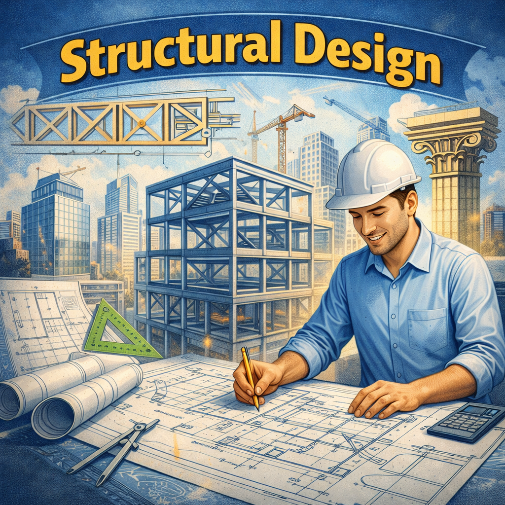 انجام محاسبات و طراحی استرکچری ساختمانها بر اساس معیارهای مهندسی و شرایط واقعی پروژه، بهمنظور تضمین استحکام، ایمنی و پایداری ساختمان در برابر بارهای مختلف.
